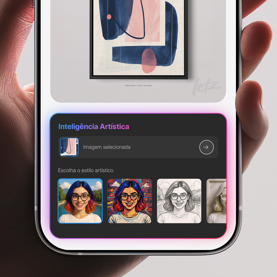 Pieces gain new life with the selected artistic style. Take advantage of Artistic Intelligence to refresh your decor with unique and exclusive works that transcend time.
