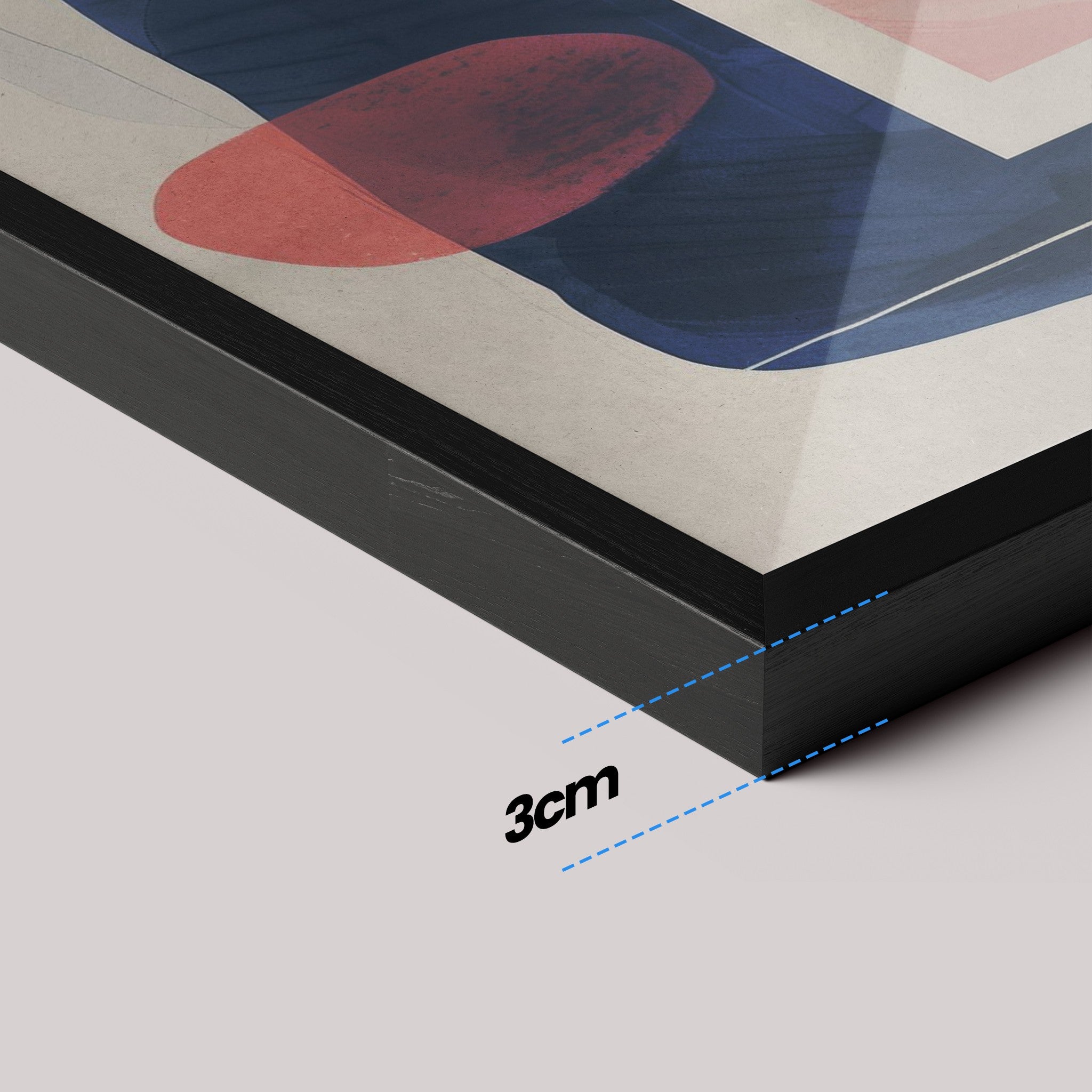 Sturdy frame (2 cm × 3 cm), same printing standard and finish. With or without glass. Ready to use.