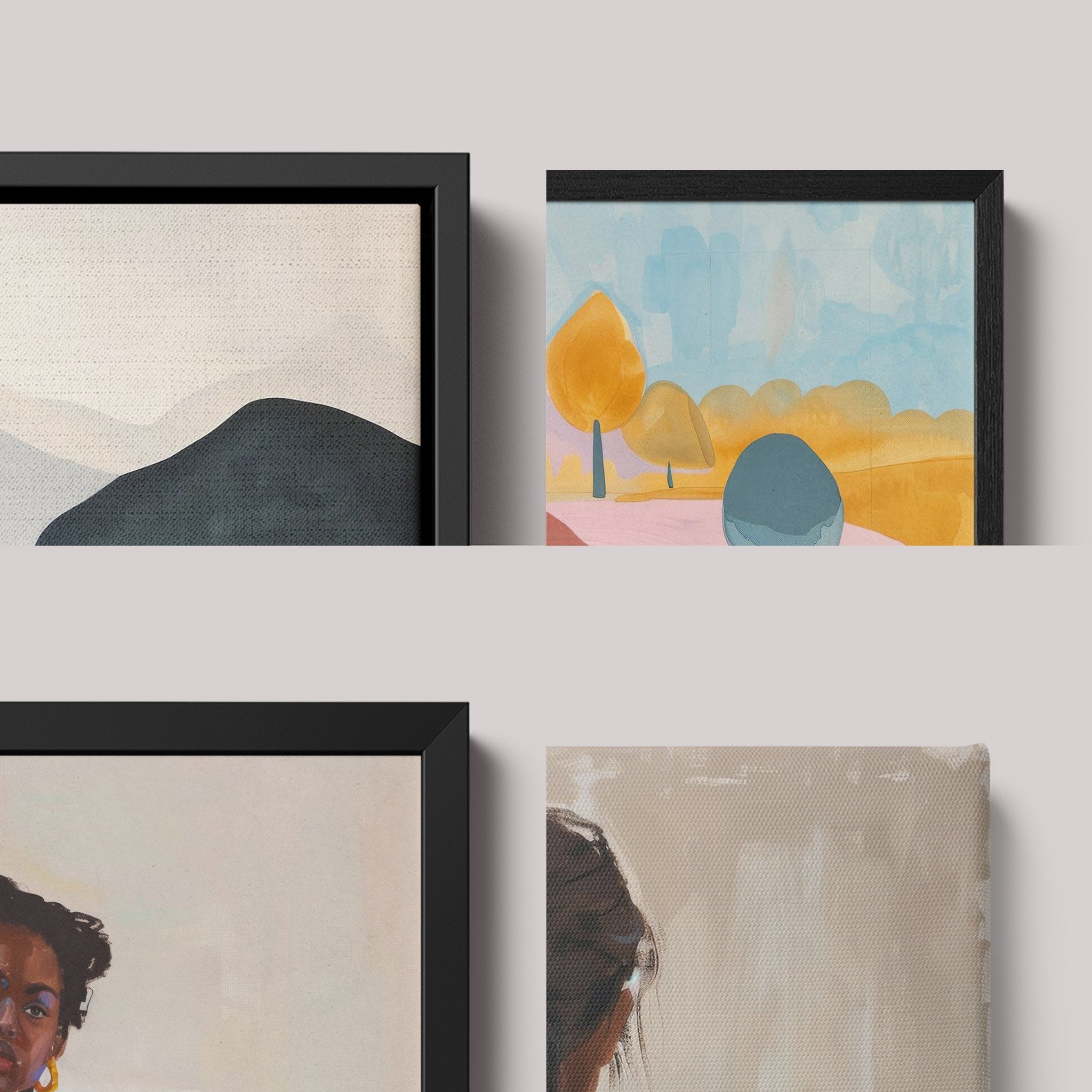 The finish between canvas and frame provides depth and elegance, enhancing the serenity of the representations.