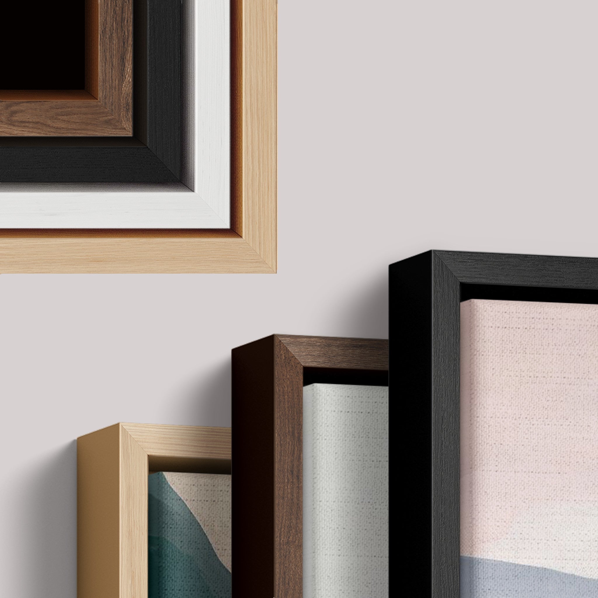 The frames are available in floating frames, standard frames, aluminum frames, or canvas. The frames come in a variety of colors, which you can select on the product page.